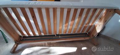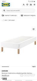 Base letto Ikea Espevar 90x200cm con struttura e doghe in pino massello, piedi in rovere massello, con rivestimento bianco sfoderabile e lavabile in lavatrice. Non include il materasso. Poco usato, in ottime condizioni su vende causa inutilizzo.