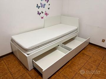 Vendo come da titolo letto contenitore Dell'IKEA FLEKKE, letto perfetto come nuovo, comprensivo di Materassi, con due grandi cassetti e trasformabile in pochi secondi da singolo a un normale matrimoniale, rete in doghe in legno, nessun segno di usura o danno. Letto ancora in vendita al prezzo di 558,90€