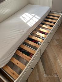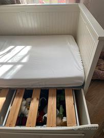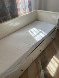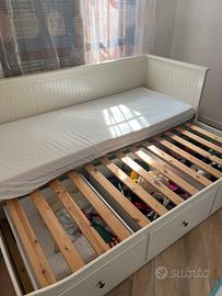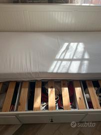 Letto singolo che diventa matrimoniale ikea hemnes. Letto usato, con qualche graffio e un paio di sbeccature di mezzo cm dello smalto.