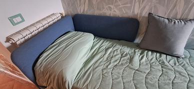 Vendo letto ikea testiera imbottito con doghe in legno possibilità di mettere la spalliera a destra a seconda della necessità in ottimo stato come nuovo. 90x 2.00 già smontato.
