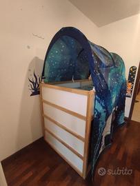 vendo letto Ikea Kura con materasso e tenda a tema spazio, ha dei segni sulla scala (come da foto)