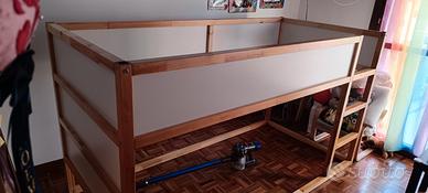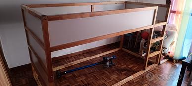 Vendo Letto Ikea KURA con tenda tipo Giungla difficile da trovare, praticamente nuovo, mia figlia l ha usato pochissimo... già smontato e come si vede dalle foto non è rovinato, sono disponibili tutti i pezzi e nessuna doga è rotta.