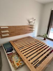 Vendo struttura letto IKEA MANDAL completa di testiera a doghe, perfetta per chi cerca uno stile scandinavo moderno e funzionale. Il letto è realizzato in legno massiccio di betulla con ampi cassettoni bianchi integrati.