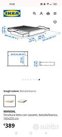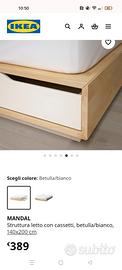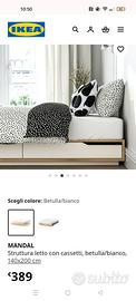 Struttura letto con 4 cassetti in legno di betulla. Il letto è in ottime condizioni, non presenta difetti. Ha le dimensioni di un letto alla francese 140×200.