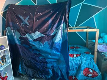 Vendo letto Ikea reversibile come da foto, con materasso e tenda (removibile), usato pochissimo infatti è pari al nuovo, smontaggio e trasporto a vostro carico