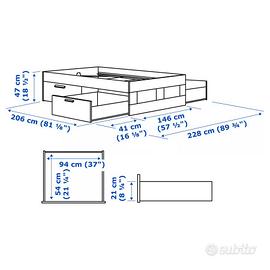 Vendo per inutilizzo letto modello Ikea Brimnes, con struttura completa dei quattro cassetti e della testata con spazio libreria laterali. Incluso anche il materasso in schiuma memory, molto comodo perché sfoderabile, usato pochissime volte, praticamente nuovo. Misure 140x200. Prezzo di listino per i tre pezzi totali circa €600,00, rivendo alla metà con struttura già montata e pronta all’uso. Disponibile a fornire altre foto in privato.
