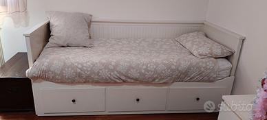 Letto divano Ikea Hemnes, estendibile, completo di 2 materassi, bianco. Misure 80 x 200 cm