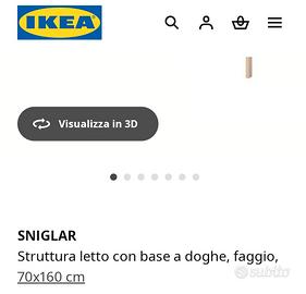 Letto ikea modello SNIGLAR. Misure 160x70 cm. Struttura in faggio, compreso materasso.