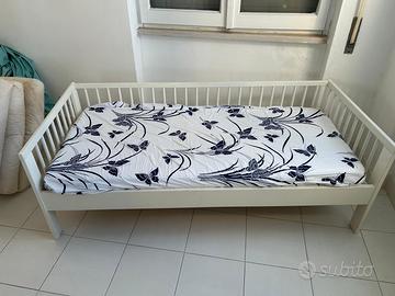 letto ikea 167x67 con spondina , materasso in lattice e doghe di legno