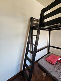 Letto Ikea Stora nero 140 x 200 con difetti mostrati nelle foto, attualmente visibile montato, condizioni di ritiro comode (parcheggio e ascensore)