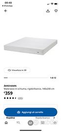 Regalo letto IKEA (EVANGER) una piazza e mezza con struttura imbottita colore grigio (non smontabile) e vendo materasso IKEA ÅKREHAMN in schiuma (acquistato tre anni fa). Letto stabile e solido, per quanto vecchiotto. Rete inclusa. Materasso ÅKREHAMN medio-rigido, confortevole e ben sostenuto, sempre usato con coprimaterasso. Soluzione completa, pronta all’uso. Marca: IKEA Misura: una piazza e mezza Vendita: solo insieme Ritiro: a carico dell’acquirente
