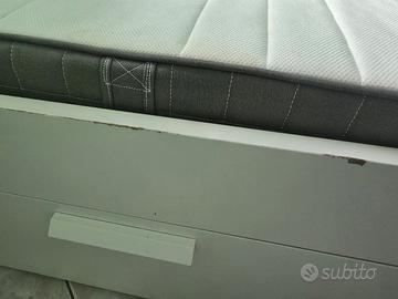 struttura letto una piazza e mezzo cm 140X200 compreso di materasso, 2 cassetti per lato, colore bianco . smontaggio carico acquirente. Pagamento solo in contanti e vendita solo residenti Catania e provincia