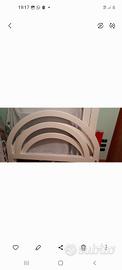 struttura letto il legno laccata bianca fatto da un artigiano con testiera e pediera a semicerchio con tutti pezzi per il semplice montaggio ,misura 170 per 195 ottime condizioni . ritiro solo a mano