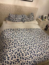 Vendo letto matrimoniale con contenitore in eco-pelle color panna, completo di materasso.
