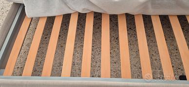 Vendo, causa trasloco, bellissimo letto imbottito. Vendo oltre la struttura la rete con doghe e il materasso. Piedini in legno.