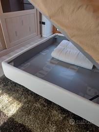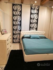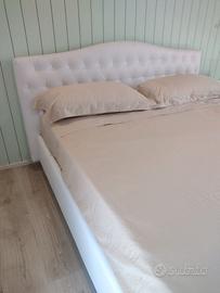 Offerta di esposizione. Letto matrimoniale con testata capitonne e giroletto basso rivestito in ecopelle colore bianco. Solo giroletto sfoderabile. Rete a doghe alzante con contenitore compresa (escluso materasso e cuscini). Misure di massimo ingombro del letto cm L183P206H102. Il letto è visionabile presso la nostra esposizione in via Nazionale 81, a Tezze sul Brenta, Vicenza. Su richiesta è possibile preventivare il trasporto e il montaggio. Per informazioni contattare la nostra sede al numero 0424560526 (anche whatsapp) o scrivere all'indirizzo e mail info@paolaelisamobili.it