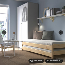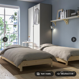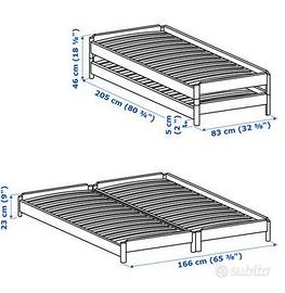 Letto impilabile ikea 200x80 cm come nuovo. Può essere usato come singolo, due singoli o matrimoniale. Facilissimo da usare Altezza: 23 cm Spessore max materasso: 13 cm Eventualmente sono disponibili anche i due materassi ikea al costo ulteriore di 50 euro l'uno