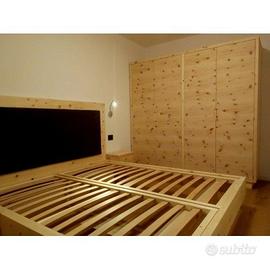 Letto in cirmolo dalle dimensioni 200x180 cm, finemente lavorato per un design elegante e naturale.