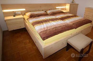 letto artigianale in legno di cirmolo spessore 48mm misura per materasso 200x180cm