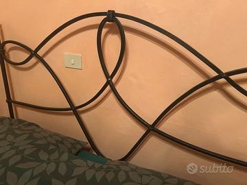 Vendo letto matrimoniale artigianale fatto a mano in ferro battuto completo di reti a doghe nuove e comodini coordinati. Prezzo trattabile