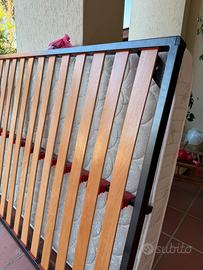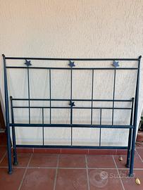 Vendo letto singolo in ferro battuto colore blu con decorazioni a forma di stelle, completo di materasso e rete a doghe.
