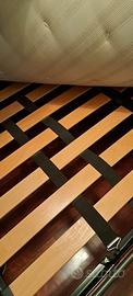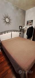 Letto matrimoniale in ferro battuto con testata e giroletto. Misure 165 x 190 Doghe in legno. Ottime condizioni, compreso di materasso e una coppia di cuscini (vedi foto). Attualmente montato. Trasporto a carico dell’acquirente. NO spedizione