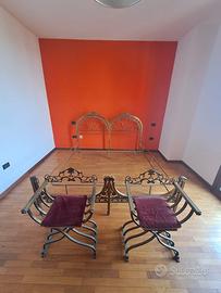 Vendo letto matrimoniale, completo di due scranni coordinati. Struttura in ferro battuto. Lunghezza: 200 cm • Larghezza: 178 cm (misura adatta a materasso matrimoniale ampio) Due scranni coordinati con seduta imbottita (colore bordeaux) inclusi. Ideale per camere dallo stile classico o vintage. Ottime condizioni, ben tenuto e solido. Disponibile per ritiro a mano.