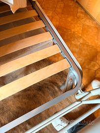 Struttura completa in ferro battuto, con testata e piede. comprensivo di doghe e , volendo materasso seminuovo (costo extra 200 euro). Ritiro e smontaggio a cura del cliente.
