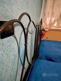 Vendo 3 lettini in ferro battuto di colorazione verde scuro, come si può notare dalla foto, e decori in oro presenti sui pomelli e ai piedi del letto.