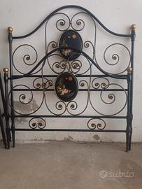 Vendo Letto in Ferro Battuto una piazza in Oro e Blu Olandese, gli scudi centrali hanno una motivazione floreale anch'esse dipinte a mano, come da foto condizioni quasi perfette.