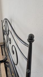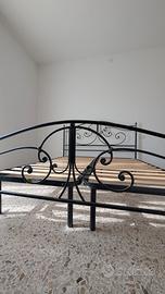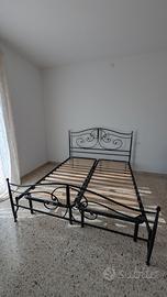 Letto matrimoniale in ferro battuto di produzione artigianale, due reti singole con doghe.