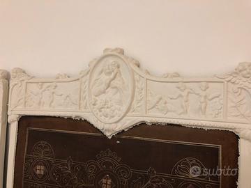 Letto matrimoniale in ferrobattuto von lavorazioni e devori in madreperla. Puó essere anche montato come due letti singoli,completo sponde testa e piedi e sbarre laterali. Letto di manifattura siciliana, Fratelli Soldano - Catania. Disponibile a dare ulteriori informazioni.