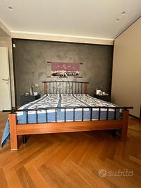 Letto in ferro battuto completo di rete e materasso matrimoniale in ottime condizioni, leggero difetto sulla gamba del letto come da foto