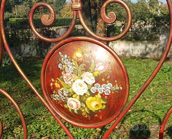 Splendido letto in ferrro originale e completo con dipinti nelle due testiere molto belli, in buonissime condizioni