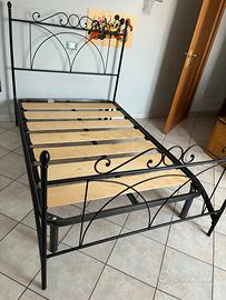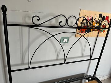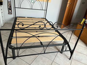Struttura letto in ferro, colore nero, da una piazza e mezzo. Rete con doghe larghe