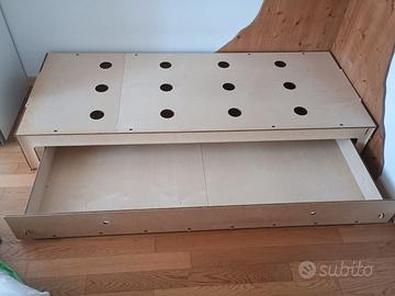Cedo per rinnovo camera ragazzo, letto in legno ecologico in betulla naturale non verniciato. Prodotto dall'azienda Totem (visitare sito totem.ws) e completamente assemblabile a mano tramite appositi "chiodini" senza ausilio di viti e ferramenta. Prodotto di design minimal e completamente naturale, completo di cassettone contenitore. Misura letto 80X200 cm. Piccole imperfezioni (come da foto allegate) dovute allo smontaggio che non compromettono assolutamente la solidità del prodotto. Fornisco istruzioni di montaggio in formato digitale PDF. In vendita a 759€ sul sito dell' azienda. Se acquistato insieme al materasso/futon abbinato e visibile nell' altro annuncio, cedo per un totale di 400€.