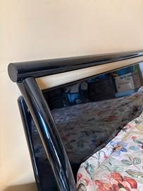 Letto in legno laccato nero di design. Anni 80. Ottime condizioni. Usato ma in Ottimo stato. Prezzo trattabile Misure : Larghezza:178 cm Lunghezza: 204 cm Altezza: 33cm