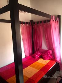 Offerissimo Vendo letto in legno massello, fatto da falegname, di una piazza e mezzo a baldacchino compreso di tende per cambio a letto matrimoniale