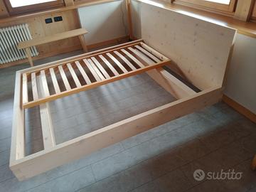 Letto in legno massello di abete sbiancato 200 x 170 cm comprese le reti a doghe fisse. Letto di esposizione con quache lieve segno di usura.