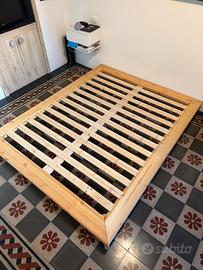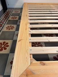 Letto a doghe stile giapponese dimensione 160x200cm . Il letto in legno Senka in pino scandinavo massiccio ha una struttura dalle linee semplici ma al tempo stesso eleganri. L'altezza del letto è 15 cm, lo spazio sotto il letto di 11 cm. Letto BIO. Verniciato con un rivestimento laccato all'acqua Il peso massimo supportato è di 300 kg.