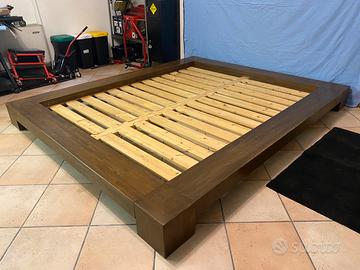 Letto giapponese isola come nuovo,tutto ad incastri senza viti per eliminare cariche elettrostatiche, sempre trattato con cere naturali al cedro. Misure totali ingombro cm240 x cm 200, interneo cornice doghe cm 200 x cm 160 .Vendo per cambio stile.