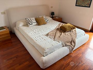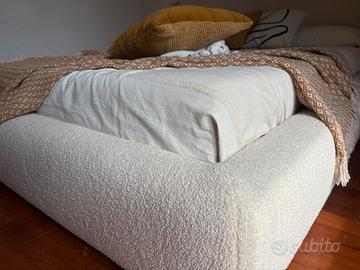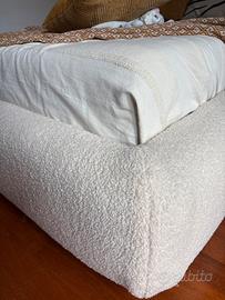 Letto sfoderabile in tessuto bouclé écru per materasso da 180 x 200 cm.