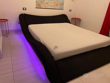 Letto firmato king in tessuto tecnico lavabile, con luci per cromoterapia, e allacci usb.