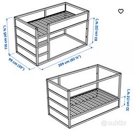 Letto kura ikea Letto reversibile Colore bianco/pino Misure 90x200 Possibilità di acquistare anche il materasso 90x200 h 12 cm adatto nei primi anni