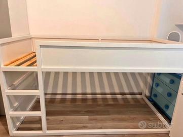 vendo letto KURA IKEA colorato di bianco, già smontato, presente anche modifica rimovibile per seconda rete da mettere a terra (rete doghe aggiuntiva compresa nel prezzo). ritiro a mano