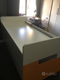 Letto laccato da 90 cm con reti ortopediche completo di cassettoni e letto estraibile sottostante