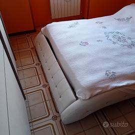 salve, come da foto vendo letto con struttura in pelle basso, con rete in doghe e comodissimo. non perditempo. prezzo 80€ trattabili