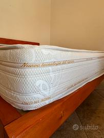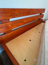 Vendo letto matrimoniale artigianale su misura, realizzato in legno massiccio con finitura naturale. Struttura robusta, perfetto per chi cerca uno stile semplice, naturale e resistente. ✅ Incluso nel prezzo anche materasso Made in Italy spesso 30 cm, in cotone, in ottime condizioni, comodo. 📏 Misure Materasso 2.10x1.80 cm Misure struttura 2.30x1.97 cm h totale 94 cm 📏 Misure Comodini 36,6x 45,5x h42 cm 📍 Zona: Lecce 💶 Prezzo: 450€ Contattami in privato per ulteriori foto/info Vendo anche singolarmente!