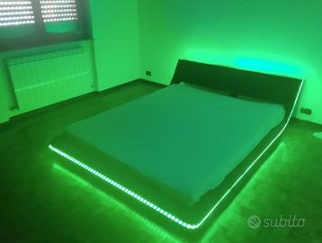 LETTO BASSO CON TESTIERA RICURVA, RIVESTITO IN PELLE COLOR NERO CON LED MULTICOLORE, PIÙ MATERASSO,, MISURE NELLE FOTO, CONDIZIONI NUOVO.... PREZZO 500,00 EURO....TEL. 3288692022 MANDARE SMS/WHATSAPP GRAZIE.