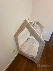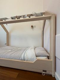 Lettino montessori Picci 140x70. Versione legno sbiancato con colori naturali, stato come nuovo. Vendo con materasso, cuscino e piumino coordinati Picci. Completo copri piumino, lenzuola, copri materasso salva pipi, copri cuscino. Vendo insieme anche a bandierine ornamentali e quattro cuscini anticaduta laterali, tutti originali Picci. Valore letto e accessori completi acquistati nel 2020, oltre 900€. Ingombro totale misure 148x78x123h. Mio figlio ci ha dormito da 6 mesi a 5 anni. Vendiamo per cambio a letto piu grande. Si vende oggetto come da foto, gia smontato, non imballato. Consegna a carico dell’acquirente.